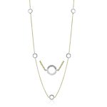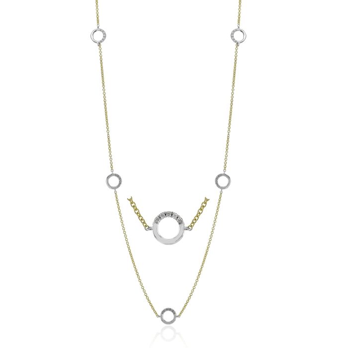 This distinctive necklace features a two-tone design highlighted by white gold circles set with sparkling diamonds.