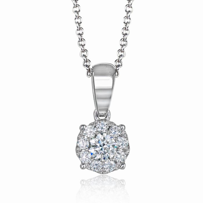 This lovely diamond pendant features a classic design that is perfect for everyday wear.